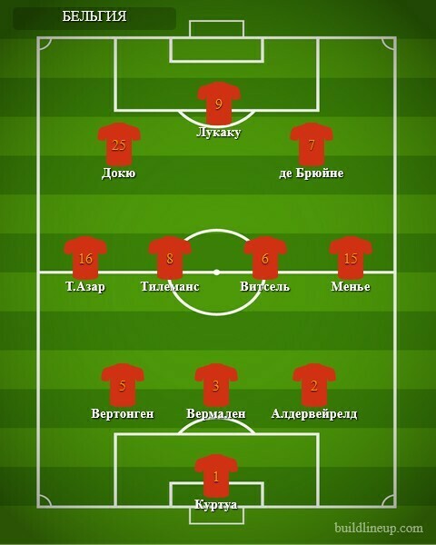 Бельгия: Куртуа, Вертонген, Вермален, Алдервейрелд, Т.Азар, Тилеманс (Мертенс, 69), Витсель, Менье (Шадли, 70- Прат, 74), Докю, Де Брюйне, Лукаку.
