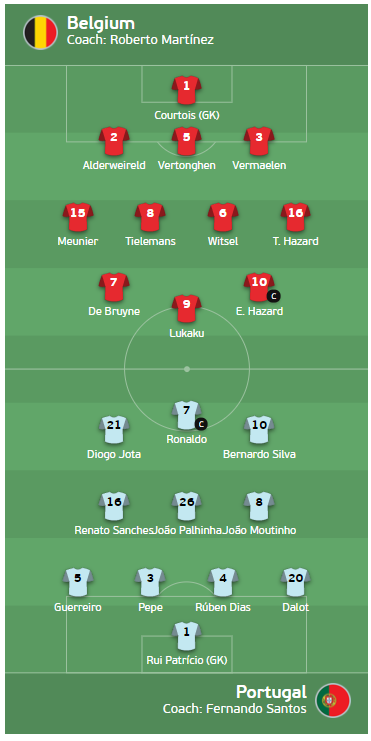 ###Бельгия – Португалия. Лукаку против Роналду. Стартовые составы команд ###