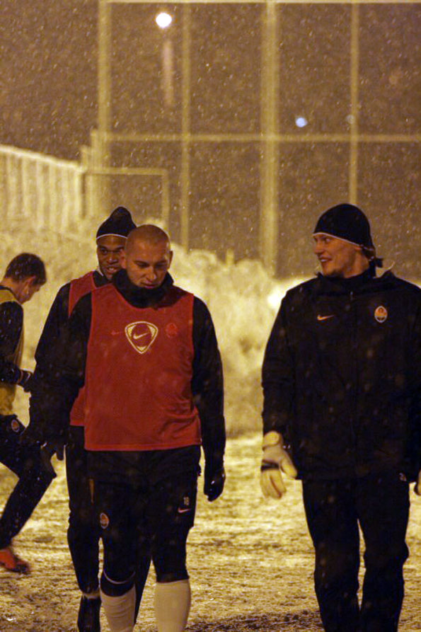 На контрасте с Киевом Донецк и округи выглядели просто заваленными снегом, что с утра выглядело очень и очень «холодно». Никто не мог предположить, что через день снегом завалит не только Донецк, но и всю Украину, доставив этим немало проблем. Ведь у нас, как всегда, зима пришла неожиданно, в середине декабря...- Далее донецкий аэропорт, стандартные процедуры, стандартное ожидание посадки. Первыми из «Шахтера» явились всегда улыбчивый Любош Михел и главный тренер Мирча Луческу, чего за ним, по словам местных, ранее не наблюдалось. Затем начали подтягиваться футболисты, которые, правда, оказались не особо словоохотливыми. Только серб Игор Дуляй, летевший на родину, и Разван Рац изъявили желание сказать пару слов.