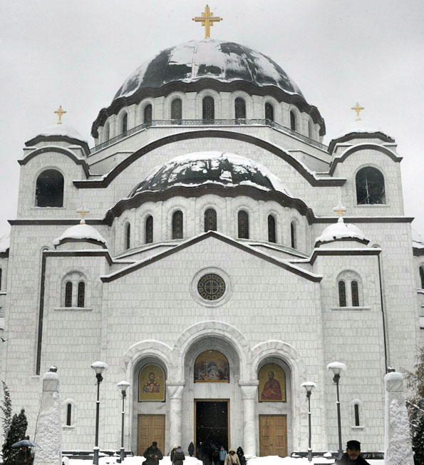 Следующим по популярности местом в Белграде является Храм Святого Саввы - самый большой православный храм в мире! Строительство Храма продолжается уже больше 70 лет! Только в 2004 году он был официально открыт и освящен, но внутри святыня до сих пор абсолютно пуста. В Храме до сих пор продолжается отделка, но пока и конца края не видно этим работам. Рядом с Храмом Святого Саввы находится Национальная библиотека Сербии, которая, к слову, имеет совсем уж «нетоварный» вид.