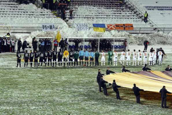 По дороге наш автобус немного потерялся, и мы заехали в какие-то дебри, откуда не без труда выехали, поскольку улочки в Белграде достаточно узенькие, а автобус огромный. База сербского клуба ничем не удивила – обычное административное здание, несколько тренировочных полей и горы снега, но это уже не плюс, а скорее минус. Пресс-конференция: обычные заученные слова, обычные вопросы. Повеселил только ответ Мирчи Луческу на вопрос сербского журналиста, на предмет капитанской повязки Игорю Дуляю – «Лично для вас сделаем Дуляя капитаном».