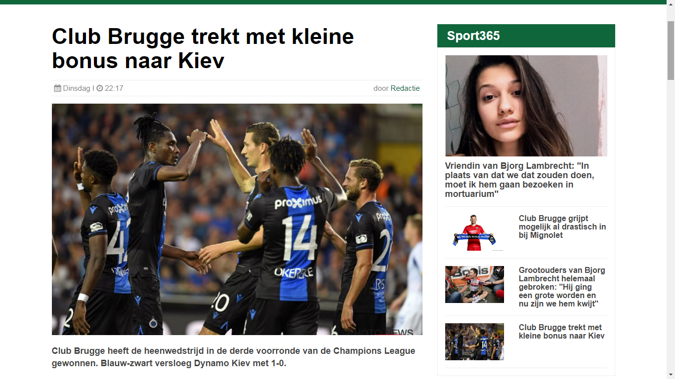 «Клуб «Брюгге» едет в Киев с небольшим бонусом», - гласит заголовок издания nieuws365.be.